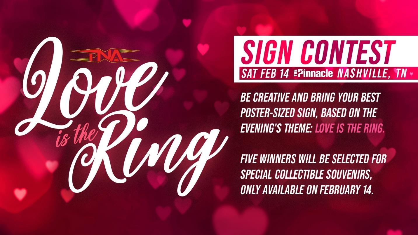 Multiple Special Events Scheduled Around “Love Is The Ring” Theme, Including RINGside Photo-Op For Fans With 10 TNA Stars, Including The Hardys The Opportunity Also Is There To Propose Inside The TNA Ring TNA Wrestling announced today the inaugural “Love Is The Ring” multi-tiered campaign to celebrate Valentine’s Day on Saturday, February 14, at the TNA live event at The Pinnacle in downtown Nashville. All TNA stars will be in-action that night for future episodes of Thursday Night iMPACT!, airing on AMC in the U.S., but it’s four special elements that highlight “Love Is The Ring.”