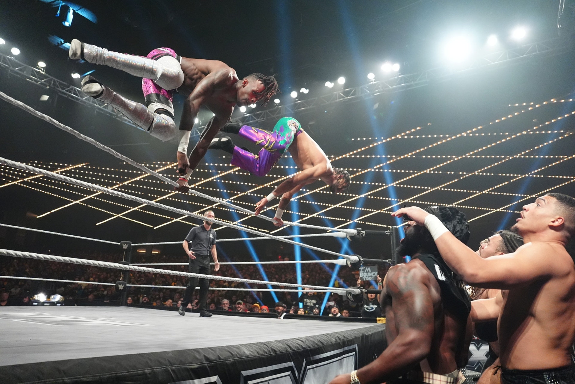 After DarkState made their presence felt during the TNA X-Division Title match between Leon Slater and Je'Von Evans at Bound For Glory, Slater and Evans joined forces to challenge Dion Lennox and Osiris Griffin for the NXT Tag Team Titles.