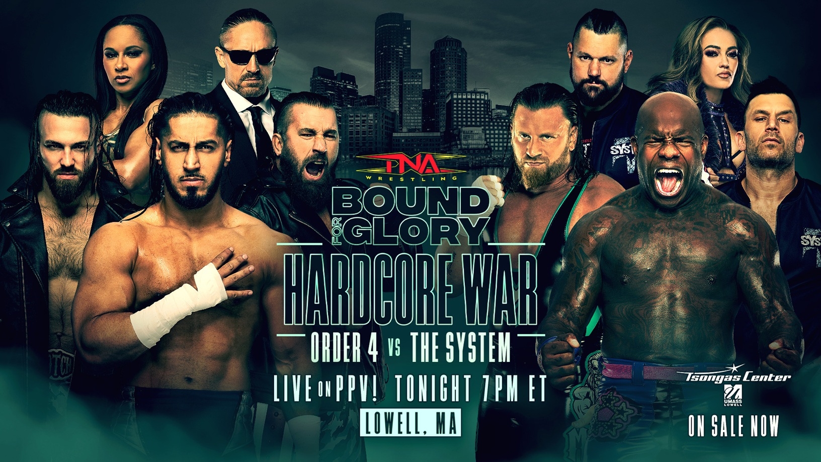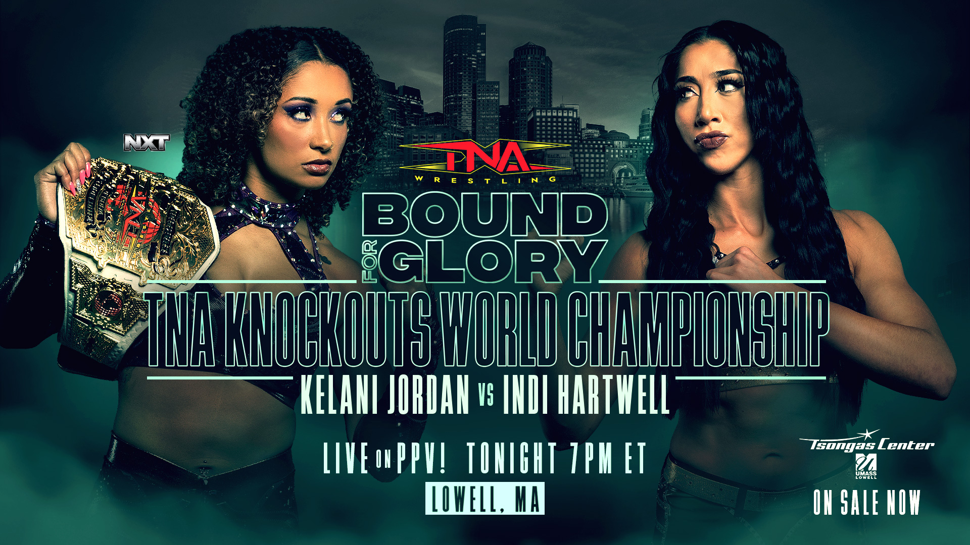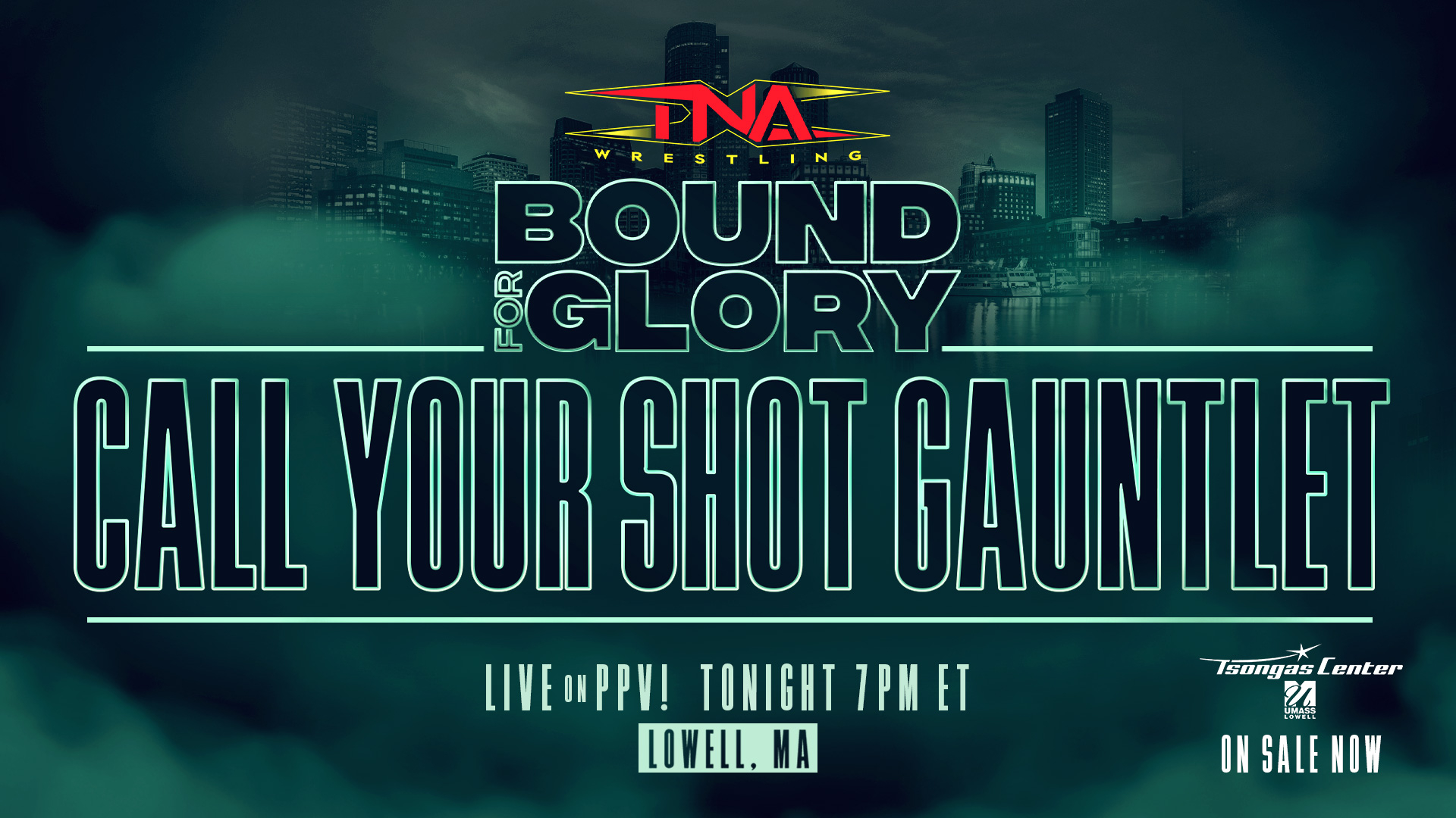 TONIGHT at 7pm ET, TNA Wrestling presents its biggest event of the year, Bound For Glory, LIVE on pay-per-view and TNA+ from the Tsongas Center in Lowell, MA. Tickets are on-sale now at tsongascenter.evenue.net