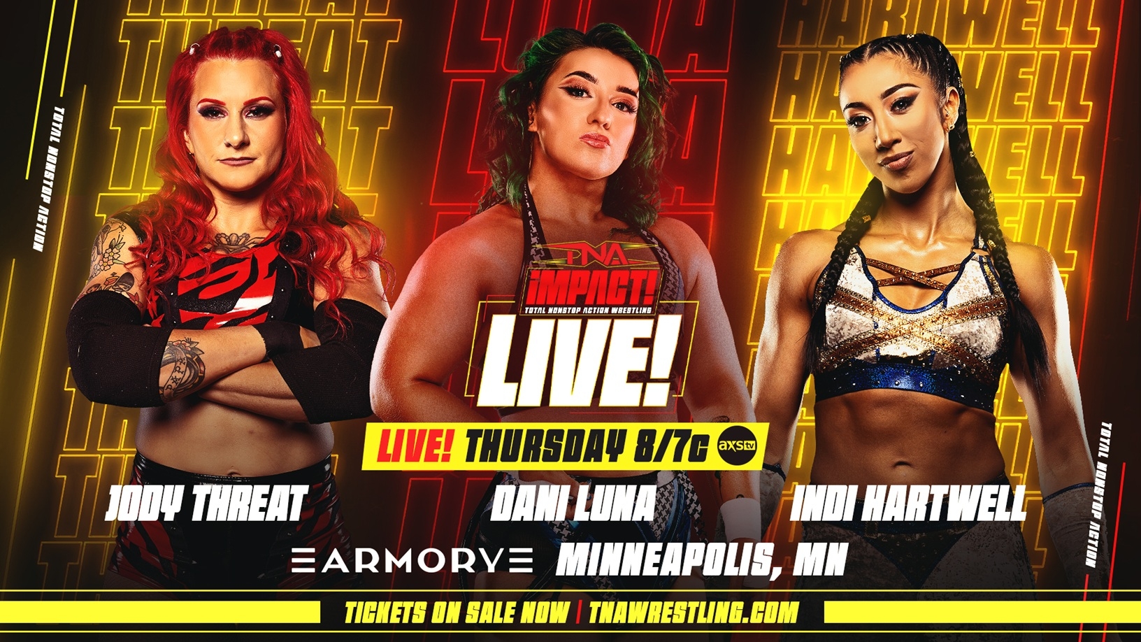 TNA iMPACT! is LIVE from Minneapolis, Minnesota as The Path to Bound For Glory continues this Thursday at 8/7c FREE on TNA+ and YouTube around the world, AXS TV in the US and Sportsnet 360 in Canada!
