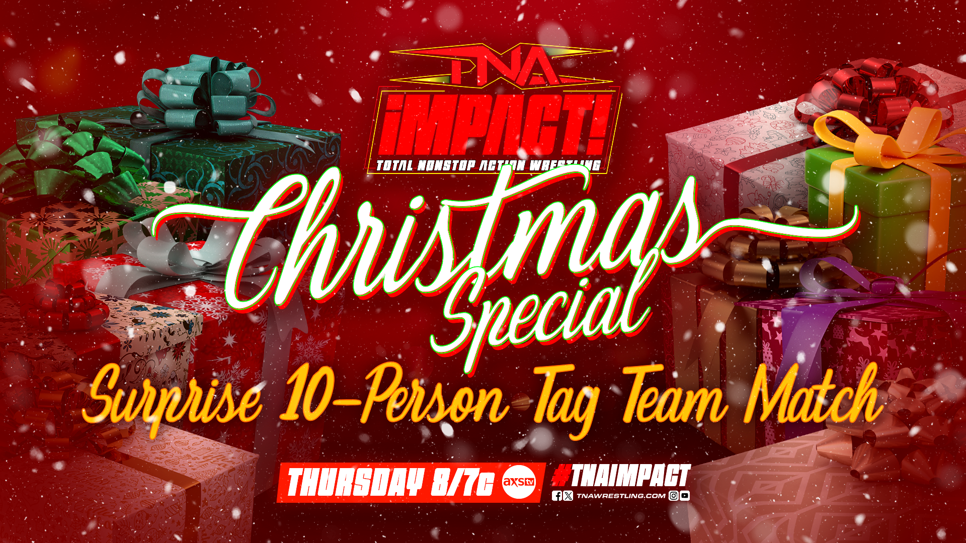 The action doesn’t stop there. A SURPRISE 10-Person Tag Team Match has been announced for the Christmas Special and the competitors won’t be revealed until bell time. With pride, momentum, and bragging rights on the line, anything can happen when ten stars collide in the iMPACT! Zone. Expect chaos. Expect unpredictability. Expect a holiday showdown only TNA can deliver this Thursday at 8/7c on AXS TV in the U.S., Sportsnet 360 in Canada, and TNA+ worldwide.