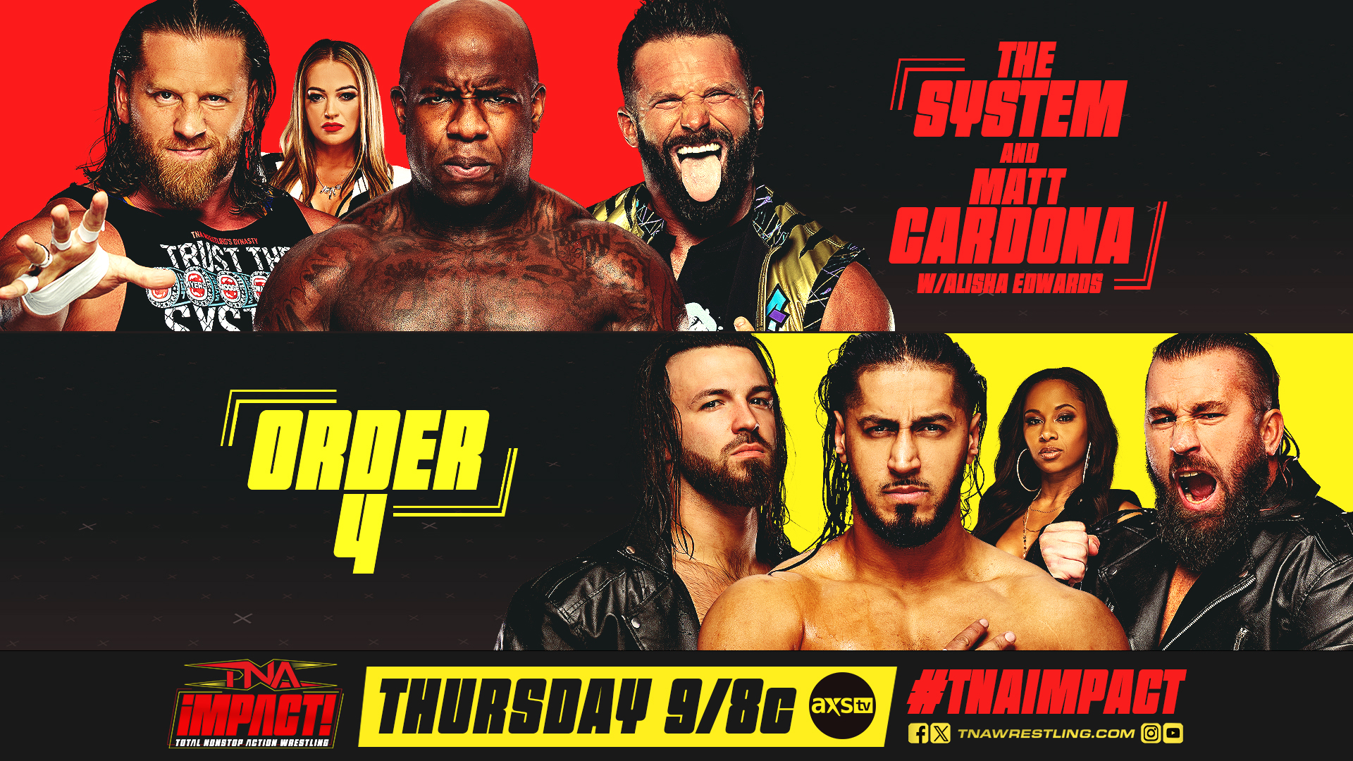 Don’t miss an all-new TNA iMPACT! next Thursday at 8/7c on TNA+ worldwide, Sportsnet 360 in Canada, and at 9/8c on AXS TV in the US, featuring: