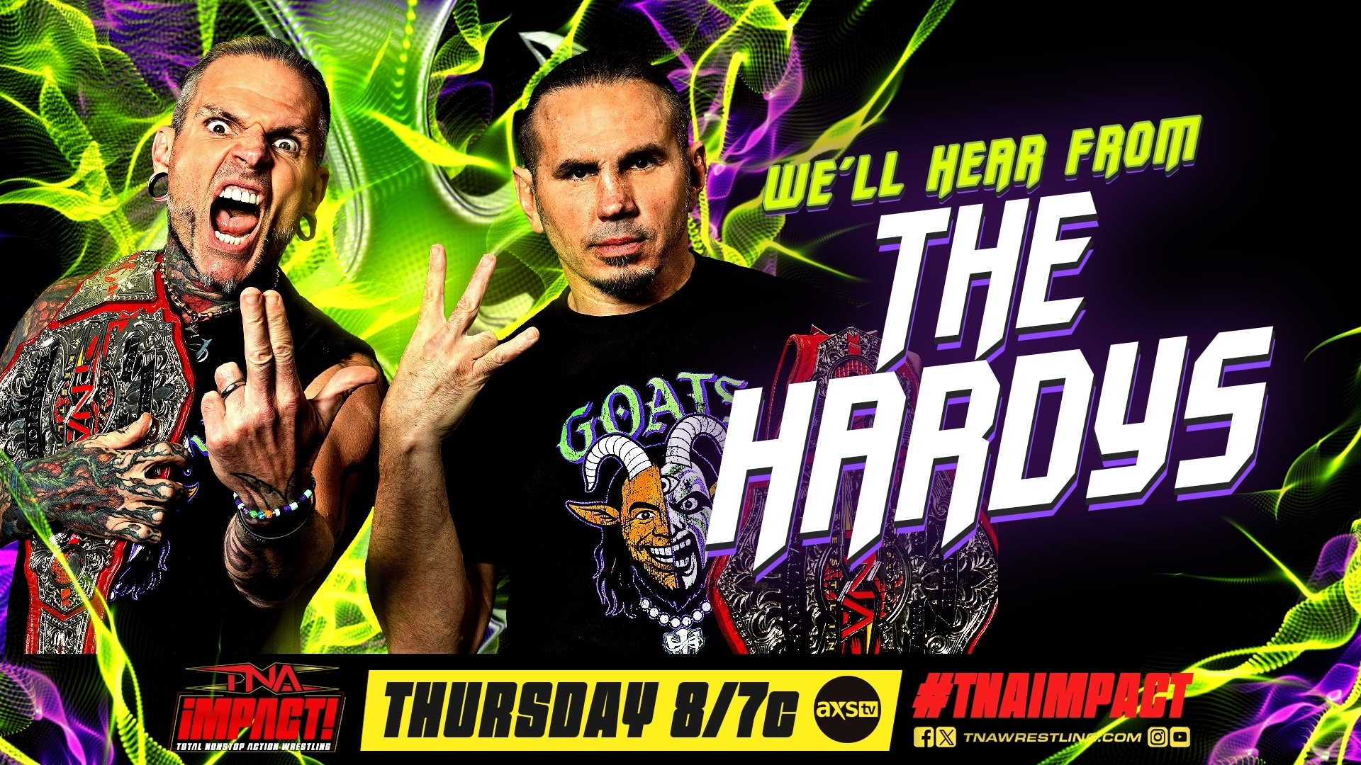 After retaining the TNA World Tag Team Titles at Final Resolution, we hear from The Hardys! Matt and Jeff address next week's Steel Cage Match and vow to bring an end to the war between TNA and the NXT outlaws. The Righteous confront The Hardys once again, praising them for their history, their accolades and their fans. Vincent and Dutch wish them good luck in the Steel Cage Match and promise that they will be watching.