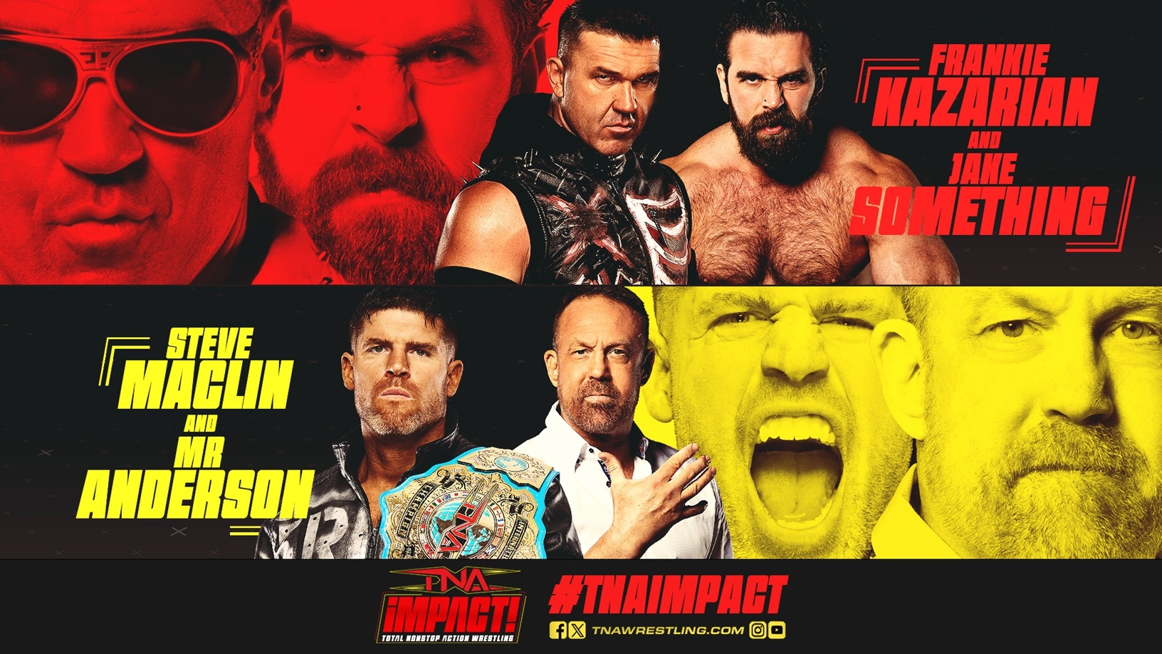 Mr. Anderson competes in TNA for the first time in over nine years as he joins forces with TNA International Champion Steve Maclin to battle Frankie Kazarian and Jake Something! The early advantage goes to Kazarian and Something as they cut off the ring and wear Anderson down. Anderson is able to create separation and make the tag to Maclin. The pace quickens as Maclin goes on the attack. Something is able to avoid Caught in the Crosshairs as Kazarian wipes out Maclin with a clothesline on the outside. Anderson counters the Chicken Wing from Kazarian into the Green Bay Plunge for two. Anderson has Kazarian beat following the Mic Check but Something breaks the pin. Kazarian is Caught in the Crosshairs as Anderson hits Something with the Mic Check. Maclin puts Kazarian away with the KIA.