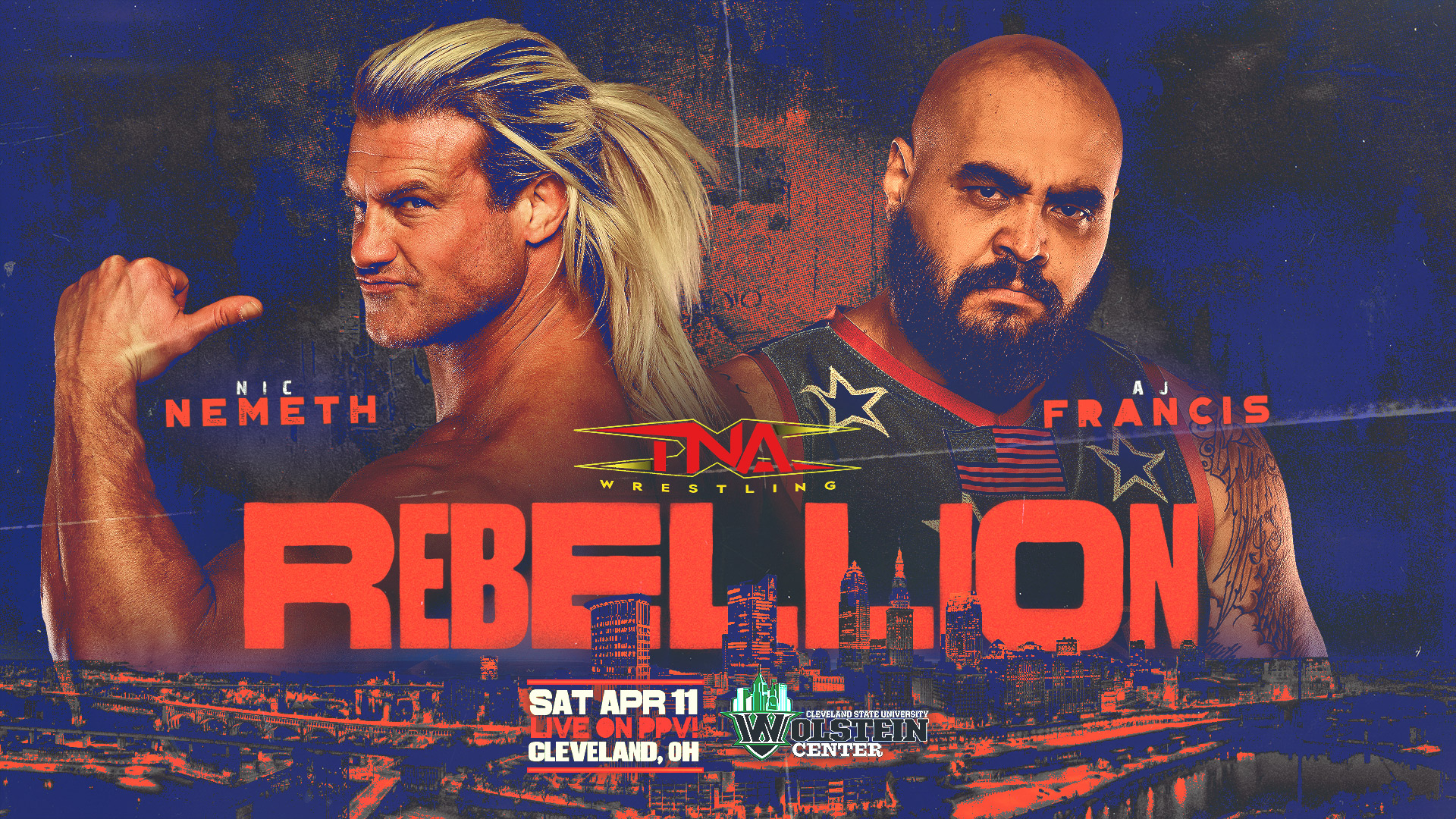 TNA Wrestling Countdown to Rebellion is streaming LIVE and FREE on TNA+ and TNA digital platforms presented by iHeartRadio. We are live from the Wolstein Center in Cleveland, OH.